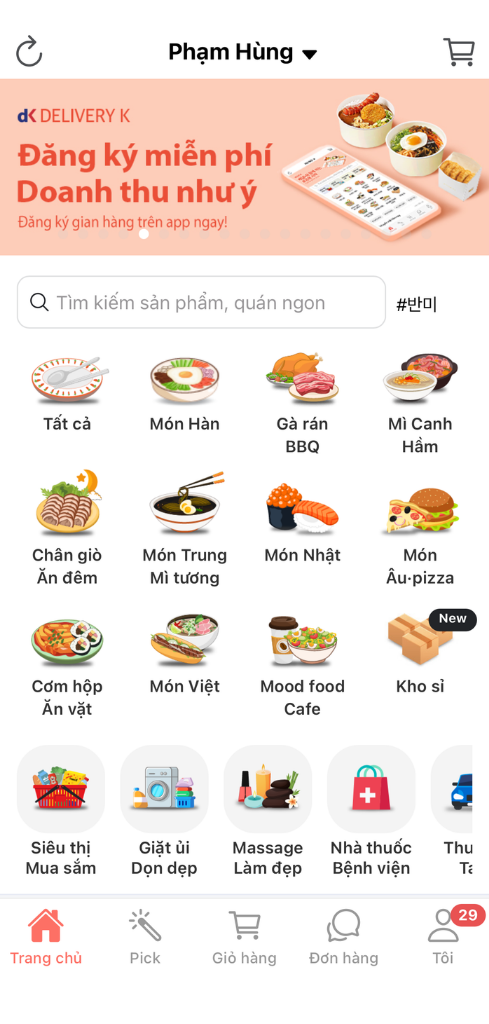 Đối với Nhà hàng và Đối tác, Delivery K giúp kết nối cộng đồng người dùng đa dạng, đặc biệt là khách hàng Hàn Quốc và hàng triệu khách quốc tế đang sinh sống, làm việc và du lịch tại Việt Nam và toàn khu vực ĐNA – mở ra cơ hội tiếp cận và tiềm năng tăng trưởng doanh thu mạnh mẽ.