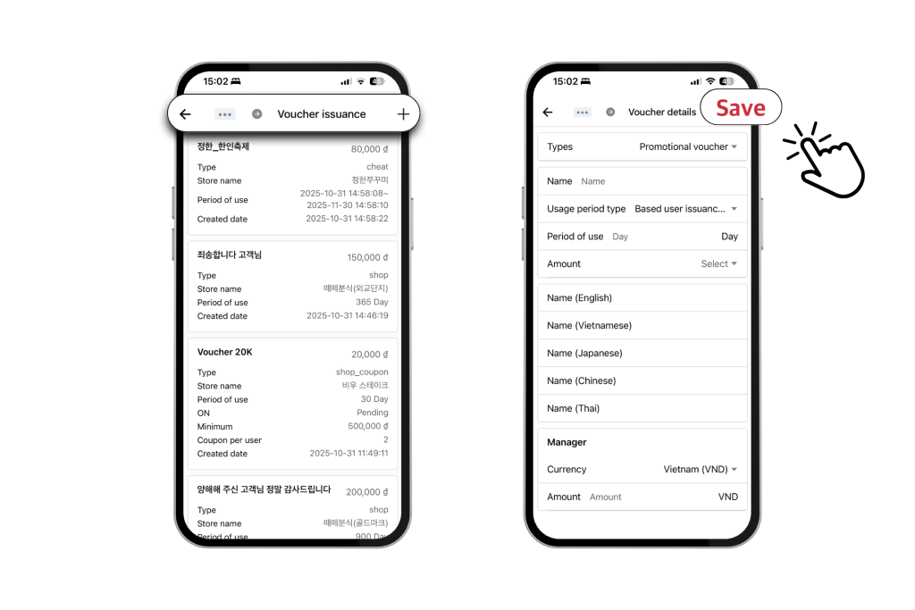 - Store owners must create vouchers first before sending them to customers. If there are no available vouchers, distribution will not be possible.