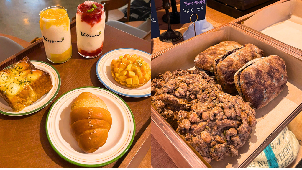 Volkorn Bakery mang phong cách châu Âu pha chút Hàn Quốc hiện đại, nổi tiếng với các loại bánh nguyên cám và dessert ít đường dành cho người yêu sức khỏe.