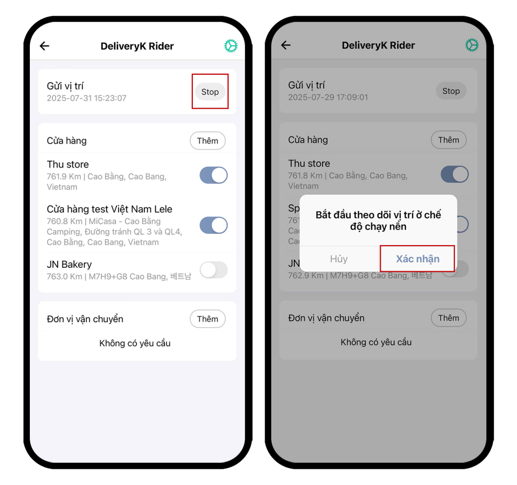 Sau khi nhân viên (shipper) hoàn tất bật trạng thái hoạt động và cấp quyền cho cửa hàng theo dõi, cửa hàng theo dõi lộ trình giao hàng của shipper bằng cách: