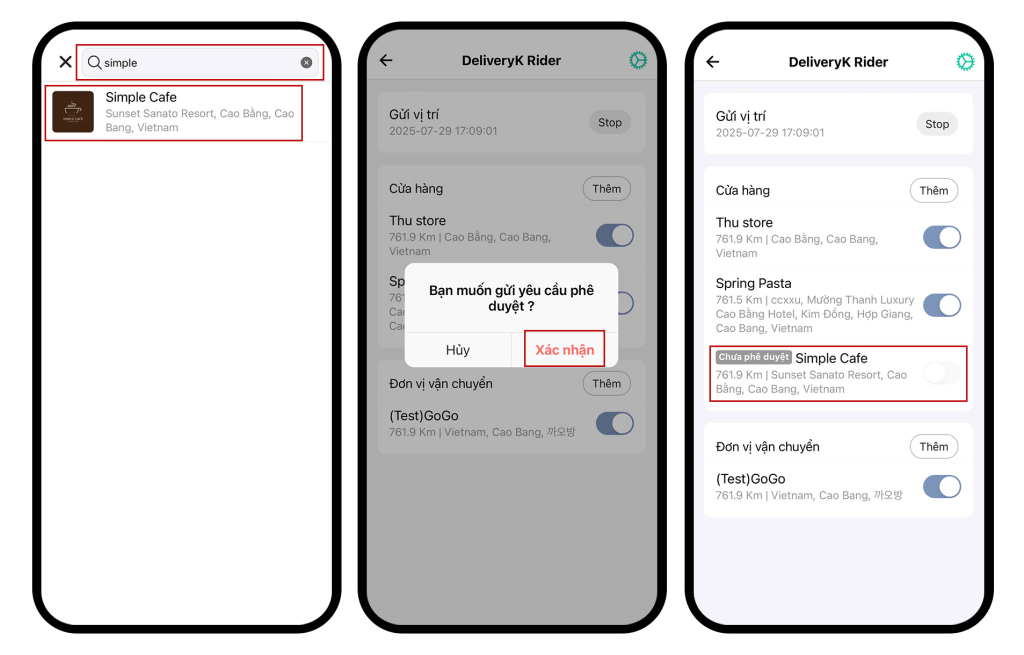 Yêu cầu đã được gửi đến Cửa hàng chờ phê duyệt