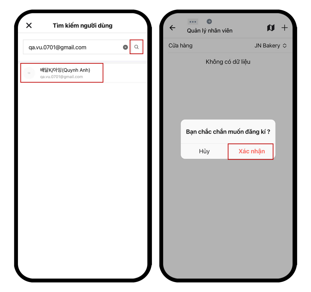 Bước 2: Nhập Tên cửa hàng ở ô Tìm kiếm > Chọn Cửa hàng > Nhấn ‘Xác nhận’