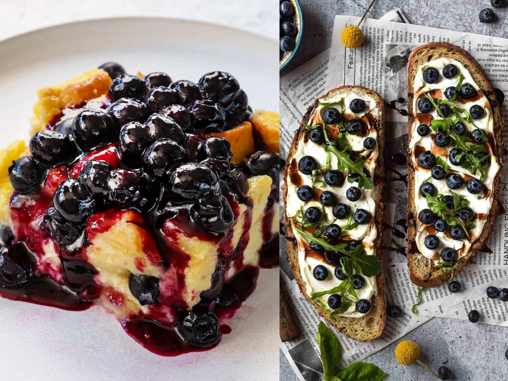Bánh mì nướng kiểu Pháp giòn nhẹ, phủ mứt việt quất chua ngọt và lớp phô mai béo mịn tan vừa đủ. Có thể hơi ngọt với một số người, nhưng là kiểu ngọt dễ chịu, không ngấy do có vị chua của quả việt quất cân bằng hương vị. Rất hợp cho những ngày đông ở nhà.