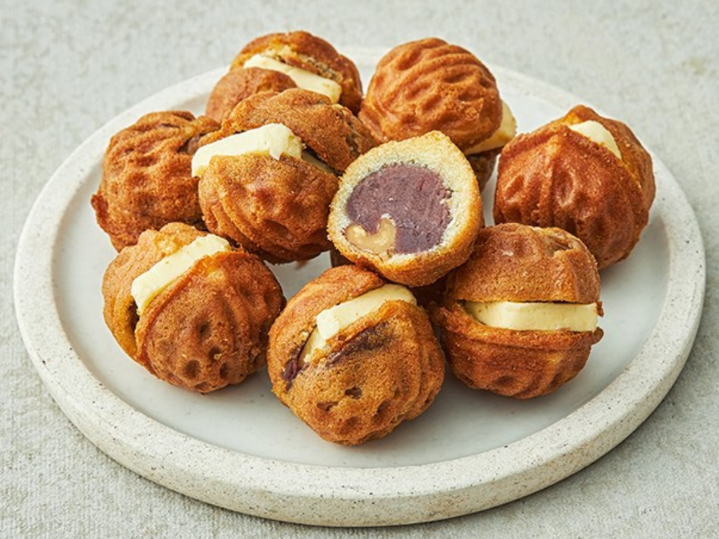 Những chiếc bánh hạt óc chó – ‘Hodu’ nhỏ xinh, vỏ ngoài hơi giòn, bên trong mềm xốp. Nhân thường là đậu đỏ nghiền kèm óc chó, custard hoặc phô mai kem. Vị bùi, ngọt nhẹ, nhân hạt óc chó nhai cực vui miệng và dễ ‘gây nghiện’ — khiến không ai có thể dừng lại ở cái đầu tiên.